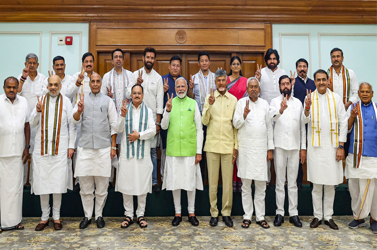 കേവലഭൂരിപക്ഷത്തിന് 272 എംമാരാണ് വേണ്ടത്. ബിജെപിക്ക് ലോക്‌സഭയില്‍ 240 എംപിമാരാണുള്ളത്. എന്‍ഡിഎയിലെ രണ്ടാമത്തെ വലിയ കക്ഷിയായ ടിഡിപിക്ക് 16 എംപിമാരുണ്ട്. നിതീഷ് കുമാരിന്റെ ജെഡിയുവിന് 12 എംപിമാരുമുണ്ട്. സഖ്യകക്ഷി കളെ പിണക്കി മന്ത്രിസഭ രൂപീകരിക്കുക ബിജെപിക്ക് സാധ്യമല്ല. അതിനാല്‍ രമ്യമായ പരിഹാരത്തിനായി സഖ്യകക്ഷി നേതാക്കളുമായി നരേന്ദ്രമോദിയും അമിത്ഷായും ജെപി നഡ്ഡയും ചര്‍ച്ചകള്‍ നടത്തിവരികയാണ്.
