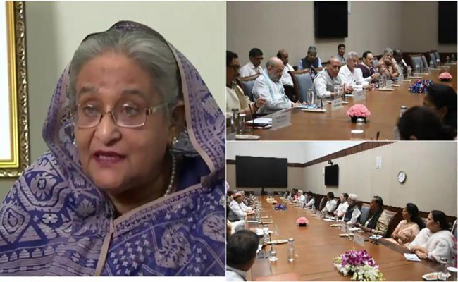 ഷെയ്ഖ് ഹസീന ഇന്ത്യയില് അഭയം തേടിയോ എന്ന് സര്ക്കാര് വ്യക്തമാക്കിയില്ല. കേന്ദ്ര സര്ക്കാരിന്റെ നടപടികള്ക്ക് യോഗത്തില് പങ്കെടുത്ത കോണ്ഗ്രസ് നേതാക്കളായ രാഹുല് ഗാന്ധിയും കെ.സി വേണുഗോപാലും പിന്തുണ അറിയിച്ചു.