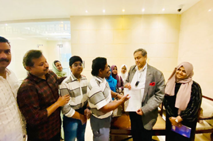 ജിദ്ദ: ജിദ്ദയിലെ തിരുവനന്തപുരം സ്വദേശികൾ ഏറെ നാളായി അനുഭവിക്കുന്ന യാത്രാ ക്ലേശത്തിന് പരിഹാരം കാണാൻ തിരുവനന്തപുരത്തേക്ക് നേരിട്ട് വിമാന സർവീസ് വേണമെന്നാവശ്യപ്പെട്ടുകൊണ്ട് തിരുവനന്തപുരം പ്രവാസി അസോസിയേഷൻ തിരുവനന്തപുരത്തിന്റെ ലോക സഭാംഗമായ ഡോ. ശശി തരൂരിന് മെമ്മോറാണ്ടം നൽകി. ടി.പി.എ പ്രസിഡന്റ് നാസുമുദ്ദീൻ മണനാക്കാണ് സംഘടനയെ പ്രതിനിധീ കരിച്ച് മെമ്മോറാണ്ടം കൈമാറിയത്.