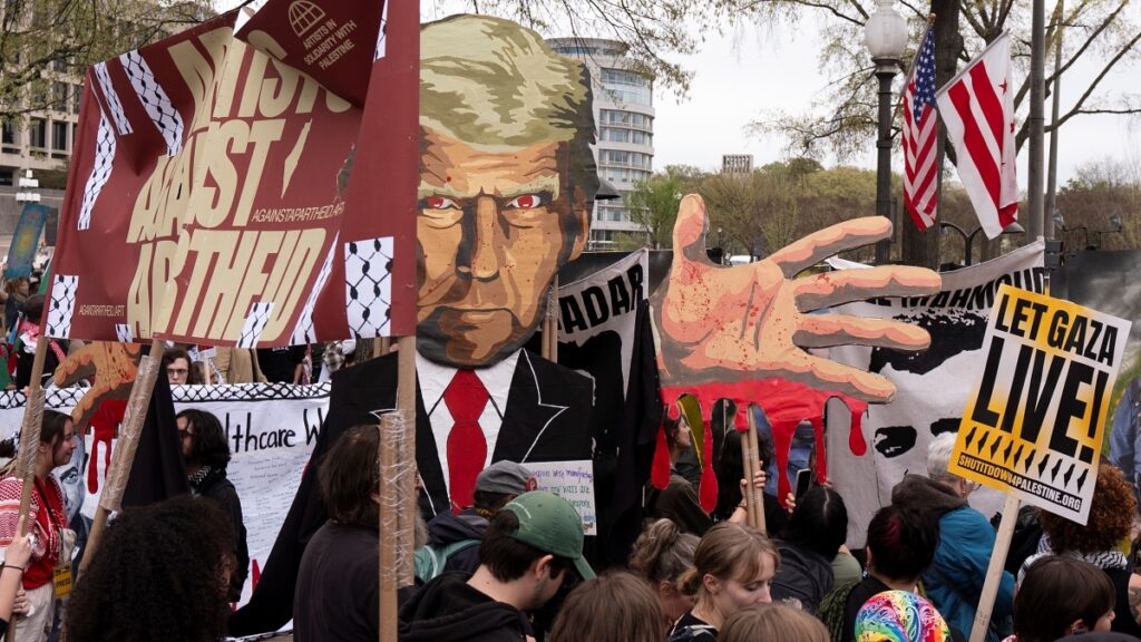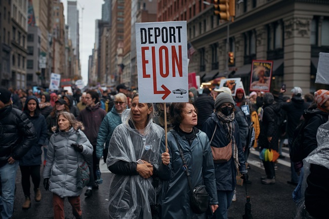 ഫെഡറൽ തൊഴിലാളികളെ പിരിച്ചു വിടുക, കുടിയേറ്റക്കാരെ നാടുകടത്തുക, ട്രാൻസ്‌ജെൻഡർ വ്യക്തികള്‍ക്കുള്ള സംരക്ഷണം കുറയ്ക്കുക, ആരോഗ്യ പരിപാടികൾക്കുള്ള ധനസഹായം വെട്ടിക്കു റയ്ക്കുക, സോഷ്യൽ സെക്യൂരിറ്റി അഡ്‌മിനിസ്ട്രേഷൻ ഫീൽഡ് ഓഫീസുകൾ അടച്ചുപൂട്ടുക തുടങ്ങിയ ഭരണകൂടത്തിന്‍റെ നീക്കങ്ങളിൽ പ്രതിഷേധിച്ചാണ് അമേരിക്കയില്‍ പതിനായിരങ്ങള്‍ തെരുവി ലിറങ്ങിയത്