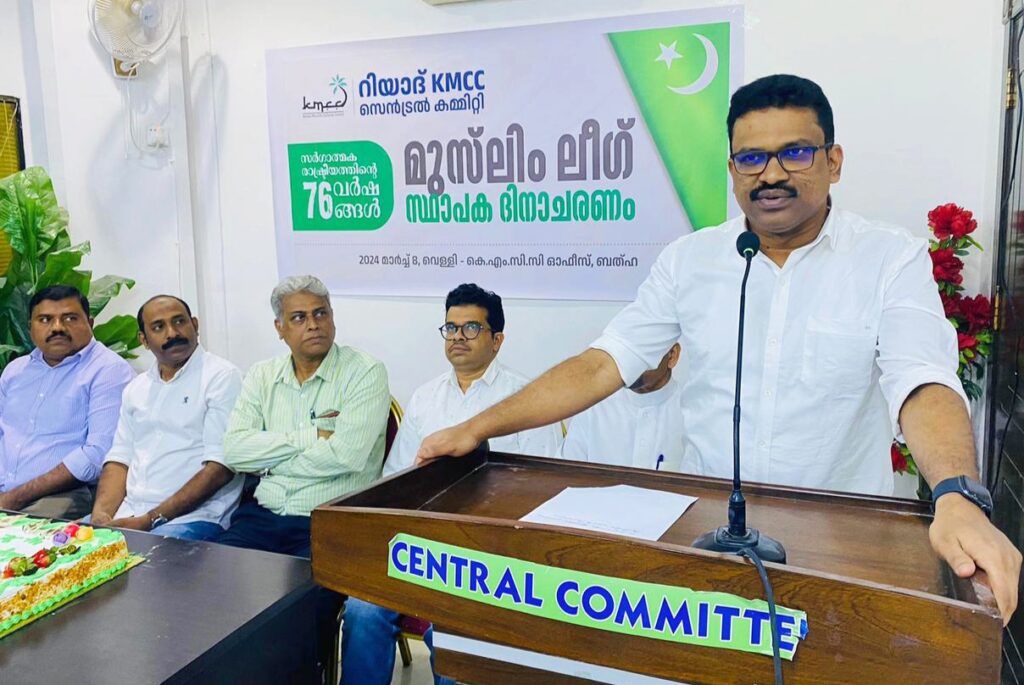റിയാദ്. ഇന്ത്യൻ യൂണിയൻ മുസ്‌ലിം ലീഗിന്റെ എഴുപത്തിയാറാം സ്ഥാപക ദിനം ആചാരിച്ചു. റിയാദ് കെഎംസിസി സെൻട്രൽ കമ്മിറ്റി ഓഫീസിൽ നടന്ന പരിപാടി യിൽ സുരക്ഷ പദ്ധതി ചെയർമാൻ അബ്ദുറഹ്മാൻ ഫാറൂഖ് അധ്യക്ഷത വഹിച്ചു. കെഎംസിസി സെൻട്രൽ കമ്മിറ്റി ജനറൽ സെക്രട്ടറി ശുഐബ് പനങ്ങാങ്ങര ഉദ്ഘാടനം നിർവ്വഹിച്ചു.