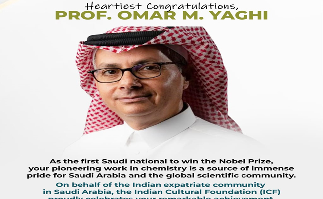 ശാസ്ത്ര മേഖലയിൽ അറബ് ശാസ്ത്രജ്ഞർ നടത്തുന്ന വിപ്ലകരമായ മുന്നേറ്റങ്ങൾക്കുള്ള അംഗീകാര മായാണ് പ്രൊഫസർ ഉമർ യാഗിക്ക് ലഭിച്ച നൊബേൽ പുരസ്കാരം ലഭിച്ചതെന്ന് ഐസിഎഫ് അഭിപ്രായപ്പെട്ടു. വരണ്ട പ്രദേശങ്ങളിൽ വായുവിൽ നിന്നും വെള്ളം വേർതിരിച്ചെടുക്കാനുള്ള ശാസ്ത്ര ഗവേഷണങ്ങൾക്ക് നേതൃത്വം നൽകുകയും ഇത് പ്രകാരം റിയാദിൽ മഴ വർഷിപ്പിക്കുകയും ചെയ്തിരുന്നു. മലിനീകരണവസ്തുക്കളിൽ നിന്ന് വെള്ളം ശുദ്ധീകരിക്കാനും കാർബൺ ഡൈ ഓക്സൈഡ് പിടിച്ചെടുക്കാനും ഹൈഡ്രജൻ സംഭരിക്കാനും കഴിവുള്ള വസ്തുക്കളുടെ വികസനത്തിനും പ്രൊഫ. ഉമർ യൂനുസ് യാഗി വലിയ സംഭാവനകൾ നൽകിയിട്ടുണ്ട്.