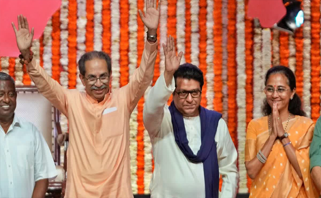 വോർലിയിൽ നടന്ന “അവാജ് മറാത്തിച്ച” റാലിയിൽ, മഹാരാഷ്ട്രയുടെ നിർദ്ദിഷ്ട നിർബന്ധിത ഹിന്ദി ഭാഷാ നയത്തിൽ പ്രതിഷേധിച്ച് ഏകദേശം 20 വർഷത്തിനിടെ ആദ്യമായി രണ്ട് കസിൻസും പരസ്യമായി ഒരുമിച്ച് നിൽക്കുന്നു. മറാത്തി അഭിമാനം സംരക്ഷിക്കുന്നതിനായി അവർ ഐക്യം സ്വീകരിക്കുകയും പ്രതിജ്ഞയെടുക്കുകയും ചെയ്തു. പ്രതിഷേധം വിജയിച്ചു: രണ്ട് ജിആർമാരെയും പിൻവലിച്ചു.
