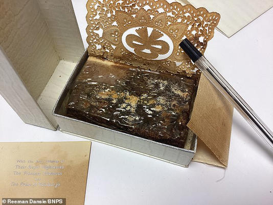 വലിയ മാറ്റങ്ങളൊന്നും കേക്കിൽ വന്നിട്ടില്ല. കേക്ക് അതിന്റെ യഥാർത്ഥ പെട്ടിയോടുകൂടി സംരക്ഷിക്കപ്പെട്ടിരുന്നു . വർഷങ്ങളുടെ പഴക്കമുള്ളതിൽ ഇത് കഴിക്കാൻ അനുയോജ്യമല്ല. എന്നാൽ ഈ കേക്കിൻ കഷ്ണത്തിന്റെ യഥാർത്ഥ അവകാശി സ്കോട്ട്ലൻഡിലെ എഡിൻബർഗിലെ ഹോളിറൂഡ് ഹൗസിലെ വീട്ടുജോലിക്കാരിയായ മരിയോൺ പോൾസൺ ആയിരുന്നു. ഇവർക്ക് ബക്കിംഗ്ഹാം കൊട്ടാരത്തിൽ നിന്ന് സമ്മാനമായി ലഭിച്ചതാണ് ഈ കേക്കിന്റെ കഷ്ണം.
