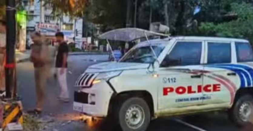 രാവിലെ ആറുമണിയോടെ എകെജി സെന്ററിന് സമീപത്തായിരുന്നു അപകടം. നിയന്ത്രണം വിട്ട വാഹനം റോഡിന്റെ ഡിവൈഡറിൽ സ്ഥാപിച്ചിട്ടുള്ള ഹൈമാസ് ലൈറ്റിന്റെ പോസ്റ്റിലേക്ക് ഇടിച്ചു കയറിയാണ് അപകടം ഉണ്ടായത്. രാത്രി പട്രോളിങ് കഴിഞ്ഞ് ഇന്ധനം നിറയ്ക്കുന്നതിനായി പോവുകയായിരുന്ന വാഹനമാണ് അപകടത്തിൽപ്പെട്ടത്. മുൻപിലിരുന്ന രണ്ടുപേരും സീറ്റ് ബെൽറ്റ് ധരിച്ചിരുന്നു. പിറകിലിരുന്ന അജയ് കുമാർ സീറ്റ് ബെൽറ്റ് ധരിച്ചിരുന്നില്ല.അപകടത്തിൽ അജയ്കുമാറിന്റെ തലയ്ക്കും നെഞ്ചിനും സാരമായി പരുക്കേറ്റിരുന്നു. പൊലീസുകാരെ ഉടൻ തന്നെ ആശുപത്രിയിലെത്തിച്ചെങ്കിലും അജയ്കുമാറിന്റെ ജീവൻ രക്ഷിക്കാനായില്ല. മറ്റുള്ളവരുടെ പരുക്ക് ഗുരുതരമല്ല.