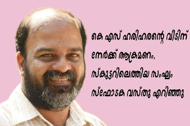കെ എസ് ഹരിഹരന്റെ വീടിന് നേര്‍ക്ക് ആക്രമണം, സ്‌കൂട്ടറിലെത്തിയ സംഘം സ്‌ഫോടക വസ്തു എറിഞ്ഞു