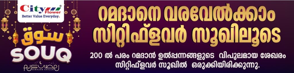 പുണ്യങ്ങളുടെ പൂക്കാലമായ പരിശുദ്ധ റമദാനെ വരവേല്ക്കാനുളള ഒരുക്കത്തിലാണ് ലോകം. 2024 മാര്ച്ക് രണ്ടാം വാരം വ്രതമാസം ആരംഭിക്കും. മനസ്സും ശരീരവും ശുദ്ധമാക്കാനുളള വ്രതാനുഷ്ടാനം ആഘോഷപൂര്വമാണ് ആചരിക്കുന്നത്. അതുകൊണ്ടുതന്നെ ഏറ്റവും വലിയ വിപണന മേളകൂടിയാണ് റമദാനിലും തുടര്ന്നുളള ഈദ് വേളയിലും അരങ്ങേറുന്നത്. ഏറ്റവും മികച്ച വിലയില് ഉപഭോക്താക്കള്ക്ക് ഉത്പ്പന്നങ്ങള് തെരഞ്ഞെടുക്കാന് അവസരമുണ്ട്. റമദാന് ആവശ്യമായ മുഴുവന് ഉത്പ്പന്നങ്ങളും സൂഖില് ലഭ്യമാണ്. സിറ്റി ഫ്ളവര് ഹൈപ്പര് മാര്ക്കറ്റുകളില് ഫെബ്രുവരി 28 മുതലാണ് റമദാന് സൂഖ് ആരംഭിക്കുക.