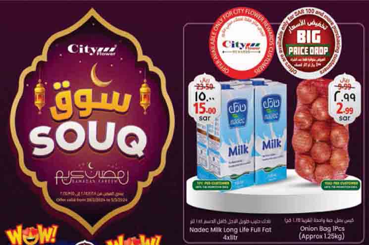 സിറ്റിഫ്ളവറിന്റെ നാല് ഹൈപ്പര്മാര്ക്കറ്റുകളില് റിയാദിലെ ബത്ഹയിലും സകാക്ക, ഹായില്, ജുബൈല് ഹൈപ്പര്മാര്ക്കറ്റുകളിലും മറ്റു ഔട്ട് ലെറ്റുകളിലും പ്രത്യേക റമദാന് തമ്പുകളില് വിപുലമായ ശ്രേണിയിലുളള ഉത്പ്പന്നങ്ങളുടെ വന് ശേഖരം ഒരുക്കിയിട്ടുണ്ട്, കൂടാതെ കുറഞ്ഞ വിലയില് അരിയും ഓയിലും അടക്കം പത്തോളം ഐറ്റംസ് അടങ്ങിയ റമദാന് കിറ്റുകളും, സുരക്ഷിതമായി സന്തോഷത്തോടെ ഷോപ്പിംഗ് നടത്താന് സിറ്റി ഫ്ലവര് പുതുതായി അവതരിപ്പിച്ചിട്ടുള്ള ഗിഫ്റ്റ് കാര്ഡ് 50SR- 100SR-150 SR എന്നിവയും ലഭ്യമാണ്