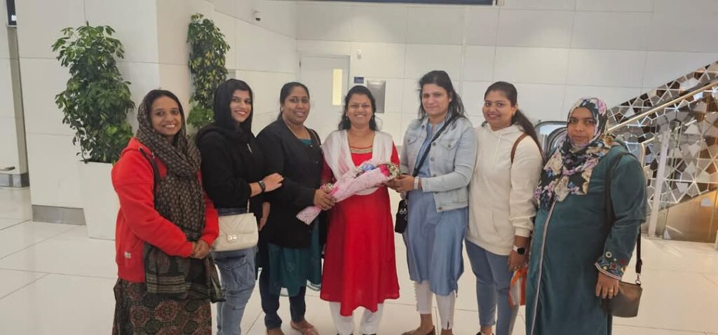 കിങ് ഖാലിദ് അന്താരാഷ്ട്ര വിമാനത്താവളത്തിൽ വനിതാ വേദി പ്രസിഡന്റ് മൃദുല വിനീഷ്, ജനറൽ സെക്രട്ടറി ജാൻസി പ്രഡിൻ, ട്രഷറർ സൈഫുന്നീസ സിദ്ധിക്ക്, മറ്റു ഭാരവാഹികളായ സ്മിത മുഹയുദ്ധീൻ, സിംന നൗഷാദ്, ശരണ്യ ആഘോഷ്,ദയ എന്നിവർ ചേർന്ന് സ്വീകരിച്ചു.