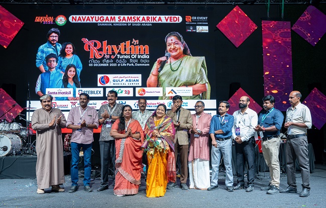 ദമ്മാം: സൗദി അറേബ്യയുടെ കിഴക്കൻ പ്രവിശ്യയിലെ പ്രവാസികൾക്ക് കലയുടെയും സംഗീതത്തി ന്റെയും വിരുന്നൊരുക്കി പത്മശ്രീ കെ.എസ്. ചിത്ര നയിച്ച “റിഥം – ട്യൂൺസ് ഓഫ് ഇന്ത്യ-2025” മെഗാ ഷോ വിജയകരമായി അരങ്ങേറി. ദമ്മാം ലൈഫ് പാർക്കിൽ വെള്ളിയാഴ്ച വൈകുന്നേരം അരങ്ങേറിയ പരിപാ ടിക്ക് ആയിരക്കണക്കിന് സംഗീതപ്രേമികളാണ് സാക്ഷ്യം വഹിച്ചത്.