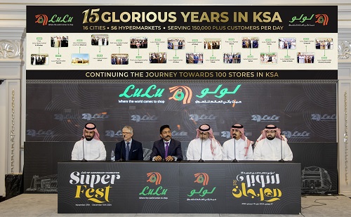 നവംബർ 27 മുതൽ ഡിസംബർ 10 വരെ നീളുന്ന ഫെസ്റ്റിൽ മികച്ച ഓഫറുകളും ആകർഷകമായ സമ്മാനങ്ങളും സൂപ്പർതാരങ്ങളായ സൂര്യ ബോബി ഡിയോൾ എന്നിവരുടെ സാന്നിദ്ധ്യത്തിൽ ലുലു സൂപ്പർ ഫെസ്റ്റിന്റെ ലോഗോ പ്രകാശനം ചെയ്തു ഒരു മില്യൺ റിയാൽ വരെ വിലമതിക്കുന്ന 1500 ഗിഫ്റ്റുകളാണ് ഉപഭോക്താകൾക്കായി ഒരുക്കിയിരിക്കുന്നത്