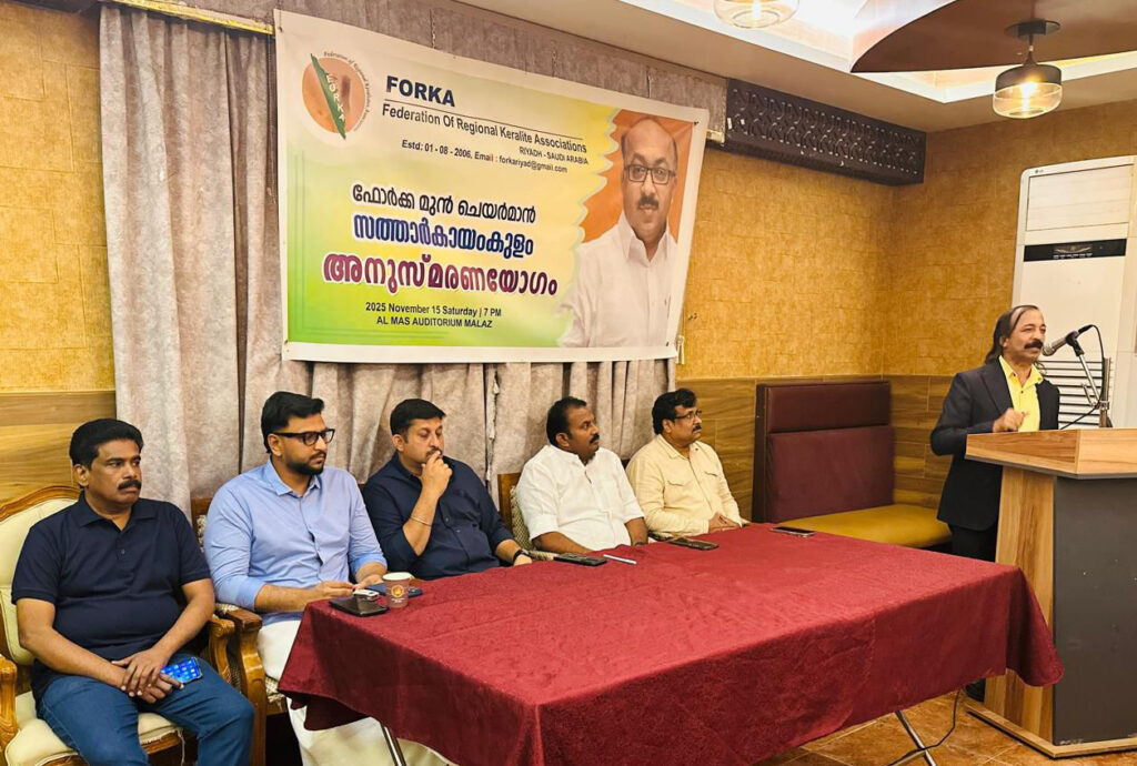 റിയാദ്: സാമുഹ്യ പ്രവര്ത്തകനും മുൻ ഫോർക ചെയർമാനുമായിരുന്ന സത്താർ കായംകുളത്തിന്റെ രണ്ടാം ചരമവാര്ഷികം സംഘടിപ്പിച്ച് പ്രാദേശിക സംഘടനകളുടെ പൊതുവേദിയായ ഫോർക്ക-റിയാദ് മലാസ് അൽമാസ് ഓഡിറ്റോറിയത്തിൽ നടന്ന അനുസമരണ യോഗത്തില്. ഫോർക ചെയർമാൻ റഹ്മാൻ മുനമ്പത്ത് അധ്യക്ഷത വഹിച്ചു. റിയാദിലെ പ്രമുഖ സാമൂഹ്യ പ്രവർത്തകൻ ശിഹാബ് കോട്ടു ക്കാട് അനുസമരണ സമ്മേളനം ഉത്ഘാടനം ചെയ്ത ചടങ്ങിൽ റിയാദിലെ സാമൂഹ്യ, രാഷ്ട്രീയ, കലാ സാഹിത്യ മാധ്യമ മേഖലയിലെ പ്രമുഖർ ഉൾപ്പെടെ ഒട്ടേറെ പേർ പങ്കെടുത്തു.