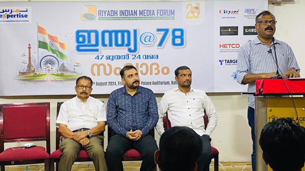 സ്വാതന്ത്ര്യദിനം: 47 മുതല്‍ 24 വരെ ‘ഇന്ത്യ@78’ റിയാദ് ഇന്ത്യന്‍ മീഡിയ ഫോറം സംവാദം സംഘടിപ്പിച്ചു.