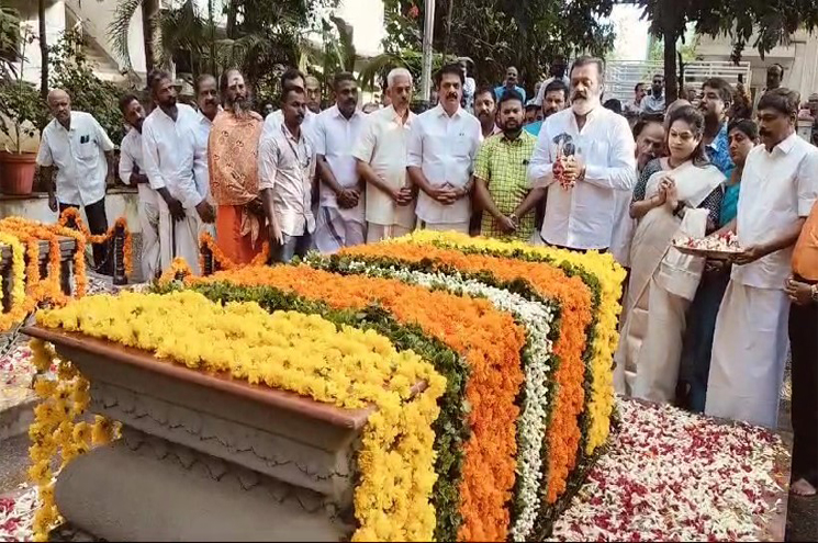 തൃശൂര്: മുന് മുഖ്യമന്ത്രി കെ കരുണാകരന്റെ സ്മൃതി മണ്ഡപത്തില് പുഷ്പാര്ച്ചന നടത്തി കേന്ദ്രമന്ത്രി സുരേഷ് ഗോപി. ഇന്നു രാവിലെ, കരുണാകരന്റെ വസതിയായിരുന്ന തൃശൂരിലെ ‘മുരളീ മന്ദിര’ത്തില് എത്തിയാണ് പുഷ്പാര്ച്ചന നടത്തിയത്. കരുണാകരന്റെ ഭാര്യ കല്യാണിക്കുട്ടിയമ്മയുടെ സ്മൃതി മണ്ഡപത്തിലും പുഷ്പാര്ച്ചന നടത്തി. വീട്ടിലെത്തിയ സുരേഷ് ഗോപിയെ പദ്മജ സ്വീകരിച്ചു. തൃശൂരിലെ ബിജെപി ജില്ലാ നേതാക്കളും അദ്ദേഹത്തിനൊപ്പമുണ്ടായിരുന്നു.