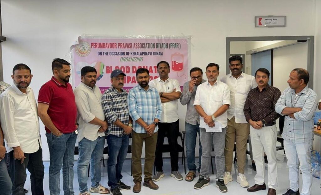 കേരളപ്പിറവി ദിനം: പെരുമ്പാവൂർ പ്രവാസി അസോസിയേഷൻ റിയാദ് രക്തദാന ക്യാമ്പ് സംഘടിപ്പിച്ചു