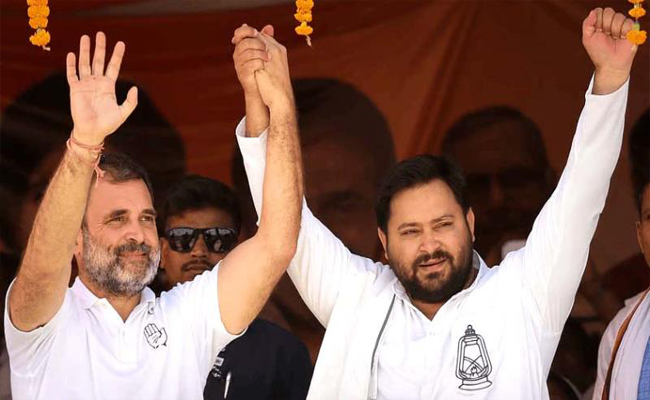 ലോക്സഭാ പ്രതിപക്ഷ നേതാവ് രാഹുല് ഗാന്ധിയും രാഷ്ട്രീയ ജനതാദള് (ആര്ജെഡി) നേതാവും മഹാ സഖ്യത്തിന്റെ മുഖ്യമന്ത്രി സ്ഥാനാര്ഥിയുമായ തേജസ്വി യാദവും തിരഞ്ഞെടുപ്പ് ക്യാമ്പയിനിടെ ആദ്യമായി വേദി പങ്കിടുന്ന റാലി ബുധനാഴ്ചയാണ്. ബുധനാഴ്ച മുസഫര്പുരിലും ദര്ഭംഗയിലും നടക്കുന്ന സംയുക്ത റാലികളെ തേജസ്വിയും രാഹുലും അഭിസംബോധന ചെയ്യും. കോണ്ഗ്രസ് അധ്യക്ഷന് മല്ലികാര്ജുന് ഖാര്ഗെയും തിരഞ്ഞെടുപ്പ് റാലികളില് പങ്കെടുക്കും.