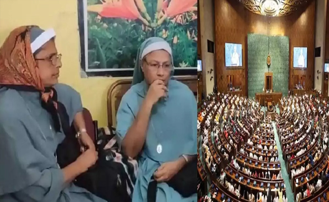 ഛത്തീസ്ഗഡിലെ മലയാളി കന്യാസ്ത്രീകളുടെ അറസ്റ്റിൽ പാർലമെന്റിന്റെ ഇരു സഭകളിലും പ്രതിഷേധം. ഛത്തീസ്ഗഡിൽ മതപരിവർത്തനം ആരോപിച്ച് കന്യാസ്ത്രീകൾ അറസ്റ്റ് ചെയ്യപ്പെട്ട സംഭവത്തിൽ കേരള എംപിമാരുടെ അടിയന്തര പ്രമേയ നോട്ടീസുകൾ ഇരു സഭകളും തള്ളി. രാജ്യസഭ 2 മണിവരെയും ലോക്സഭ 1മണി വരെയും നിർത്തിവച്ചു.