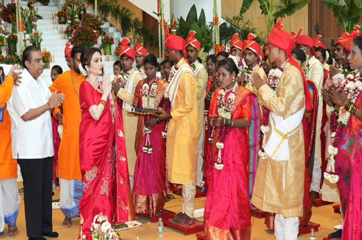 മഹാരാഷ്ട്ര പാല്ഘറിലുള്ള 50 ദമ്പതിമാർ ഇന്ന് റിലയൻസ് കോർപ്പറേറ്റ് പാർക്കിൽ നടന്ന ചടങ്ങിൽ വെച്ച് വിവാഹിതരായി. വൈകുന്നേരം 4.30 നായിരുന്നു ചടങ്ങ്. റിലയൻസ് കോർപ്പറേറ്റ് പാർക്കിൽ നടന്ന വിവാഹ ചടങ്ങിൽ ദമ്പതികളുടെ കുടും ബങ്ങൾ ഉൾപ്പെടെ 800 ഓളം പേർ പങ്കെടുത്തു.