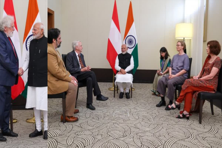 നേരത്തെ മോദി ഓസ്ട്രിയൻ ചാൻസലർ കാൾ നെഹാമറുമായി കൂടിക്കാഴ്ച നടത്തി യിരുന്നു. ‘ഇന്ത്യയും ഓസ്ട്രിയയും തമ്മിൽ വളരെ നല്ല ബന്ധമാണ് നിലനിൽക്കുന്നത്. ഈ ബന്ധം 1950-കളിൽ ആരംഭിച്ചതാണ്. 1955-ൽ ഇന്ത്യ ഓസ്ട്രിയയെ സഹായിച്ചു. ഇന്ത്യയെയും ഓസ്ട്രിയയെയും ഒന്നിപ്പിക്കുന്നത് ഭൗമരാഷ്ട്രീയ സാഹചര്യങ്ങളാണെന്ന് കാൾ നെഹാമര് പറഞ്ഞു.