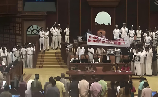 അടിയന്തര പ്രമേയം പോലും ഉന്നയിക്കാതെ പ്രതിപക്ഷം ബഹളം വച്ചത് ഭയമുള്ളതുകൊണ്ടാണെന്ന് ഭരണപക്ഷാംഗങ്ങൾ മാധ്യമങ്ങളോട് ആരോപിച്ചു. അടിയന്തര പ്രമേയത്തിന് നോട്ടിസ് നൽകി വിഷയം ചർച്ച ചെയ്യുന്നതിന് പകരം സഭ സ്തംഭിപ്പിക്കാനാണ് പ്രതിപക്ഷം ശ്രമിക്കുന്നതെന്ന് മന്ത്രി എംപി രാജേഷ് കുറ്റപ്പെടുത്തി. വിഷയം ചർച്ച ചെയ്യാൻ സർക്കാർ തയാറാണെന്നും ചർച്ച നടന്നാൽ യഥാർഥം ജനങ്ങൾ അറിയുമെന്ന ഭയമാണ് പ്രതിപക്ഷത്തിന്. സ്വർണക്കൊള്ളക്കേസിൽ ഉൾപ്പെട്ടവരെ സംരക്ഷിക്കാൻ കോൺഗ്രസ് നേതാക്കൾ ശ്രമിക്കുന്നുണ്ടെന്നും ഇതുമായി ബന്ധപ്പെട്ട ചില ചിത്രങ്ങൾ പുറത്തുവന്നി ട്ടുണ്ടെന്നും രാജേഷ് ആരോപിച്ചു.