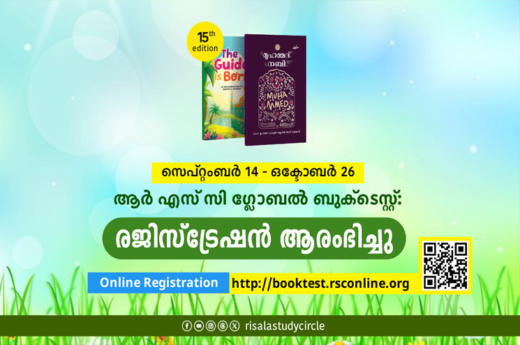 റിയാദ് : രിസാല സ്റ്റഡി സര്ക്കിള് ഗ്ലോബല് അടിസ്ഥാനത്തില് സംഘടിപ്പിക്കുന്ന പതിനഞ്ചാമത് ബുക്ടെസ്റ്റിനുള്ള രജിസ്ട്രേഷന് ആരംഭിച്ചു. പ്രവാചകരുടെ ജീവിത ദർശനങ്ങൾ അറിയുക, പൊതുജനങ്ങളിലും വിദ്യാര്ഥികളിലും ചരിത്രവായന വളര്ത്തുക എന്നിവയിലാണ് ബുക്ടെസ്റ്റ് പ്രധാനമായും ഊന്നൽ നൽകുന്നത്.