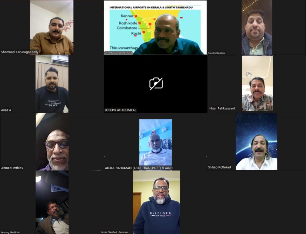 5 വർഷത്തെ ഇടവേളയ്ക്ക് ശേഷം കോഴിക്കോട് സെക്ടറിൽ ഓപ്പറേറ്റ് ചെയ്തിരുന്ന ‘സൗദിയ’ യുടെ സർവീസുകൾ ഇപ്പോൾ പുനരാംഭിക്കപ്പെട്ടത് സന്തോഷകരമാണ്. എന്നാൽ നിരവധി വിദ്യാഭ്യാസ സ്ഥാപനങ്ങളും, ഐ.ടി. ഹബ്ബും, വ്യവസായ പാർക്കും, ലോകത്തിലെ തന്നെ ഏറ്റവും വലിയ കണ്ടെയ്നർ കപ്പലുകൾ എത്തിച്ചേരുന്ന വിഴിഞ്ഞം തുറമുഖവും ഉൾക്കൊള്ളുന്ന തെക്കേ ഇന്ത്യയിലെ ഒരു പ്രധാന വ്യാപാര – വിനോദ സഞ്ചാര മേഖലയും അന്താരാഷ്ട്രവും ആഭ്യന്തരവുമായ വിമാന കമ്പനികൾക്ക് മികച്ച സാധ്യതയുള്ള പ്രധാന പട്ടണവും കേരളത്തിന്റെ തലസ്ഥാനവുമായ തിരുവനന്തപുരത്തേക്കുള്ള സർവീസ് ഇതുവരെ പുനരാരംഭിച്ചിട്ടില്ല. ഈ സാഹചര്യത്തിൽ, സൗദിയിൽ നിന്നുമുള്ള തിരുവനന്തപുരം വിമാനത്താവളത്തിന്റെ ഗുണഭോക്താക്കളെ ഉൾപ്പെടുത്തി വിപുലമായ പാസഞ്ചർ ഫോറം രുപീകരി ക്കുവാനും കേന്ദ്ര സിവിൽ ഏവിയേഷൻ മന്ത്രിക്കും, സൗദി ജനറൽ അതോറിറ്റി ഓഫ് ഏവിയേഷനും വീണ്ടും നിവേദനം നടത്തുവാനും റിയാദ് കേന്ദ്രീകരിച്ച് സംഘടിപ്പിച്ച ഓൺലൈൻ മീറ്റിങ് തീരുമാനിച്ചു. സുബൈർകുഞ്ഞ് ഫൗണ്ടേഷൻ ചെയർമാൻ ഡോ. അബ്ദുൽ അസീസ് സുബൈർകുഞ്ഞ് നിവേദന ത്തിന്റെ കരട് അവതരിപ്പിച്ചു. പ്രവാസി ഭാരതിയ പുരസ്കാര അവാർഡ് ജേതാവ് ശിഹാബ് കൊട്ടുകാട്, ജീവൻ ടീവി റിയാദ് ബ്യുറോ ചീഫ് ഷംനാദ് കരുനാഗപ്പള്ളി, ജോസഫ് അതിരുങ്കൽ, സാമൂഹിക പ്രവർത്തകരായ അലക്സ് കൊട്ടാരക്കര, ഇത്യാസ് അഹമ്മദ് , റാഫി പാങ്ങോട്, നിസ്സാർ പള്ളിക്കശ്ശേരിൽ, ഇസ്മായി നൗഷാദ്, അബ്ദുറഹ്മാൻ, അനസ് ഓച്ചിറ എന്നിവർ പങ്കെടുത്തു.