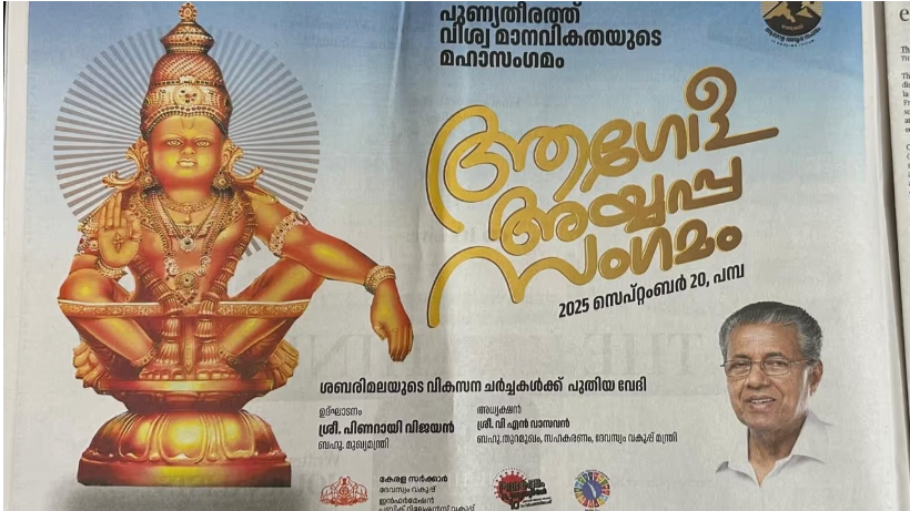 ആഗോള അയ്യപ്പ സംഗമത്തിന് മുഖ്യമന്ത്രിയുടെ ചിത്രം വെച്ച് സർക്കാർ ചെലവിൽ പത്രപരസ്യം നൽകി കോടതിയിൽ പറഞ്ഞ വാക്ക് സർക്കാർ തെറ്റിച്ചു