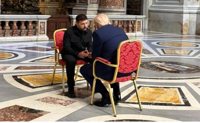 വത്തിക്കാൻ സിറ്റി : ഫ്രാൻസിസ് മാർപാപ്പയുടെ സംസ്കാര ചടങ്ങും സമാധാന ചർച്ചകളുടെ വേദിയായി. മാർപാപ്പയുടെ സംസ്കാര ചടങ്ങിനെത്തിയ യു എസ് പ്രസിഡന്‍റ് ഡൊണൾഡ് ട്രംപും ഉക്രെയ്ൻ പ്രസിഡന്‍റ് വ്ലാഡ്മിർ സെലൻസ്കിയും തമ്മിൽ കൂടിക്കാഴ്ച നടത്തി.