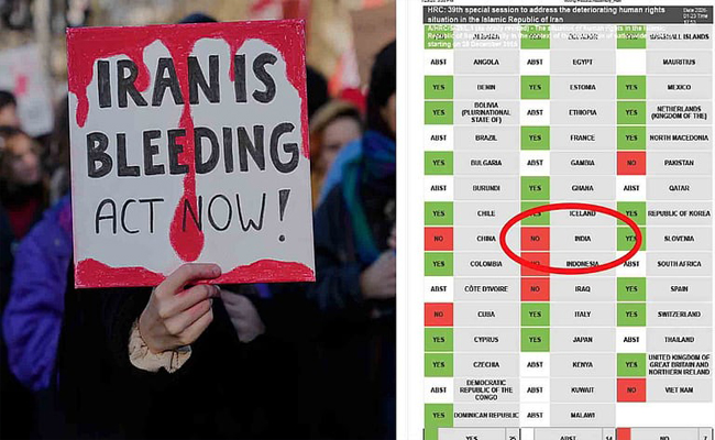ന്യൂഡല്ഹി: ഇറാനിലെ സര്ക്കാര് വിരുദ്ധ പ്രക്ഷോഭത്തെ അക്രമാസക്തമായി അടിച്ചമര്ത്തുന്നതിനെ അപലപിക്കുന്ന ഐക്യരാഷ്ട്രസഭയുടെ മനുഷ്യാവകാശ കൗണ്സിലില് (UNHRC) പ്രമേയത്തെ എതി ര്ത്ത് ഇന്ത്യ. കൗണ്സിലിന്റെ 39-ാമത് പ്രത്യേക സമ്മേളനത്തിലാണ് ഇറാന് അനുകൂലമായി ഇന്ത്യ വോട്ട് ചെയ്തത്.