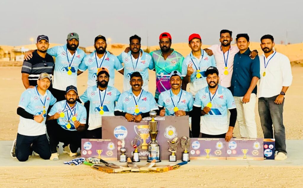 റിയാദ്: രണ്ടു മാസക്കാലം നീണ്ടുനിന്ന യൂണിവേഴ്സൽ റിയാദ് ഇന്ത്യൻസ് ക്രിക്കറ്റ് ലീഗിന് വർണ്ണാഭമായ സമാപനം. ഫൈനലിൽ മികച്ച പ്രകടനം കാഴ്ചവെച്ച മാസ്റ്റേഴ്സ് റിയാദ് കിരീടം ചൂടി. റിയാദിലെ എക്സിറ്റ് 18 എം.സി.എ. ഗ്രൗണ്ടിൽ വെള്ളിയാഴ്ച ഉച്ചയ്ക്ക് നടന്ന ആവേശകരമായ ഫൈനലിൽ ഇലവൻ ഡക്ക്സിനെ തകർത്താണ് മാസ്റ്റേഴ്സ് കിരീടം സ്വന്തമാക്കിയത്. ടൂർണമെന്റിൽ മാറ്റുരച്ചത് 20 ടീമുകളാണ്. ടോസ് നേടിയ മാസ്റ്റേഴ്സ് എതിരാളികളെ ബാറ്റിങ്ങിന് അയച്ചപ്പോൾ, നിശ്ചിത 16 ഓവറിൽ 5 വിക്കറ്റ് നഷ്ടത്തിൽ 186 റൺസ് എന്ന മികച്ച സ്കോർ ഇലവൻ ഡക്ക്സ് നേടി.
