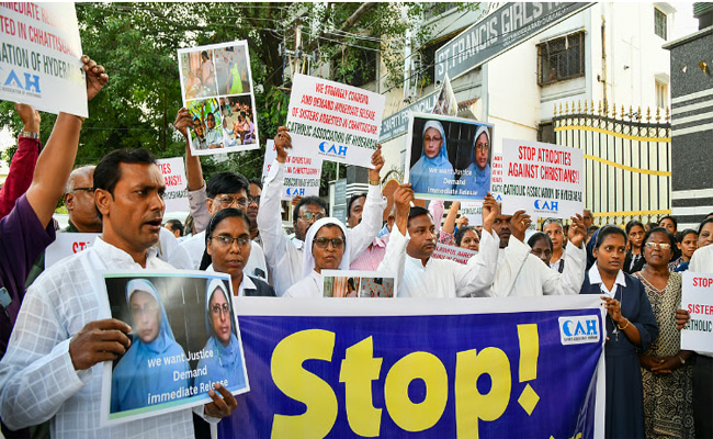 കന്യാസ്ത്രീകളുടെ അറസ്റ്റ് വലിയ പ്രതിഷേധത്തിന് ഇടവച്ചിരുന്നു. കേരളത്തില്‍ ബിജെപി ഉള്‍പ്പെടെ യുള്ള രാഷ്ട്രീയ പാര്‍ട്ടികള്‍ കന്യാസ്ത്രീകളുടെ മോചനത്തിനായി രംഗത്തുവന്നു. ക്രിസ്ത്യന്‍ സഭകളും പ്രതിഷേധവുമായി തെരുവിലിറങ്ങി. സര്‍ക്കാരിന്റെ ഭാഗത്തുനിന്ന് അനുകൂല നടപടിയുണ്ടാവുമെന്ന് കേന്ദ്ര ആഭ്യന്തര മന്ത്രി അമിത് ഷാ നേരത്തെ വ്യക്തമാക്കിയിരുന്നു.